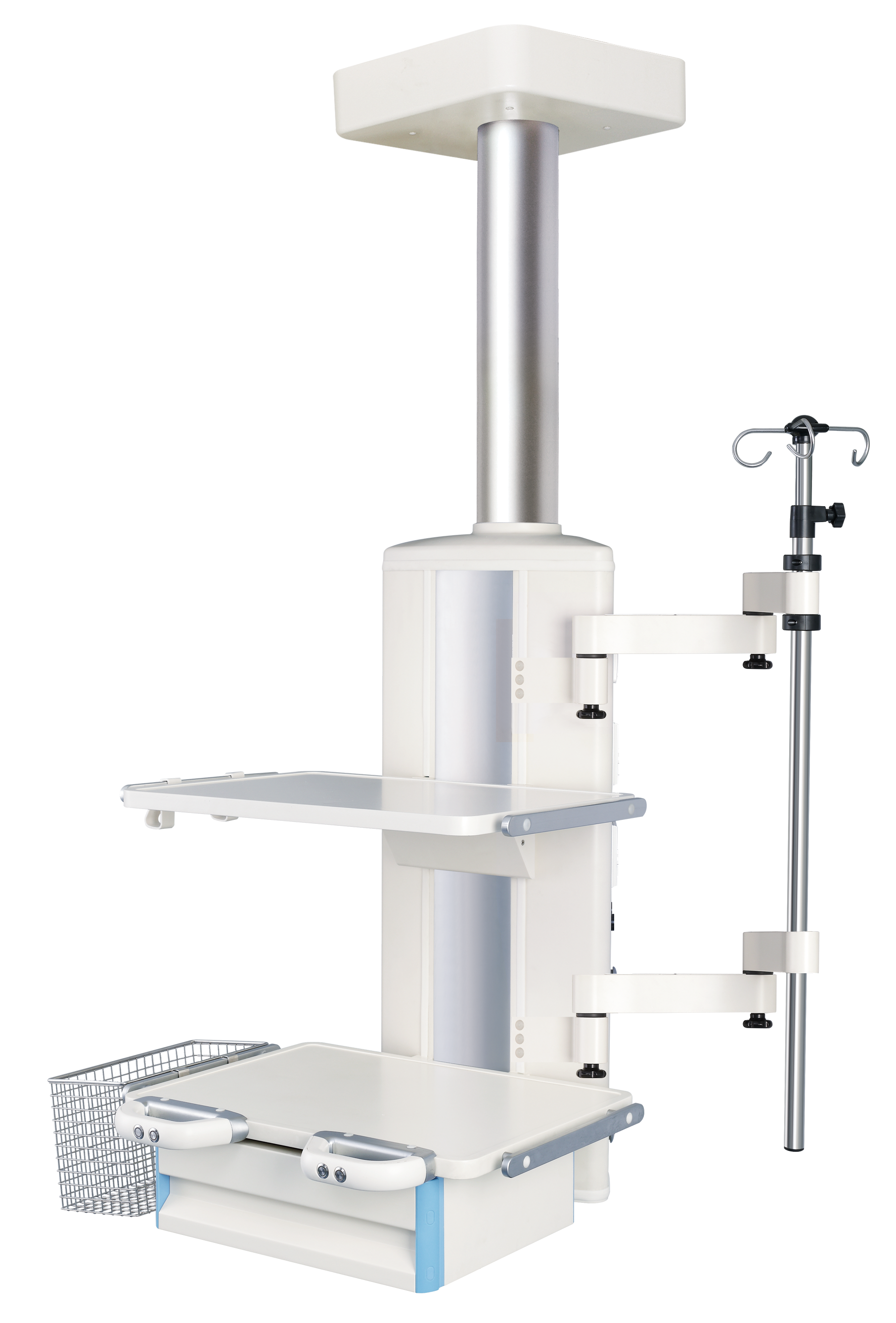 ICU 干濕分離旋臂吊橋 適用于醫院ICU病房,是現代重癥監(jiān)護病房必備的醫療搶救輔助設備,主要由橋架,干段和濕段組成。其特點在于合理的干濕分離結構,濕段配置升降靈活的輸液架和輸液泵架。干濕段配置有可升降調節(jié)的醫療監(jiān)護儀器平臺,在干濕段上分別將氧氣,空氣,吸引,強弱電,網絡輸入終端配置在醫護人員抬手可及的塔體上。濕段采用懸臂結構,提高了治療空間,移動旋轉部分采用氣控制動防飄移,桁架中央配置一款環(huán)保,節(jié)能的LED照明治療。為臨床治療提供了照明解決方案,另外還可根據您的要求選配通信傳呼,監(jiān)控,可視電話